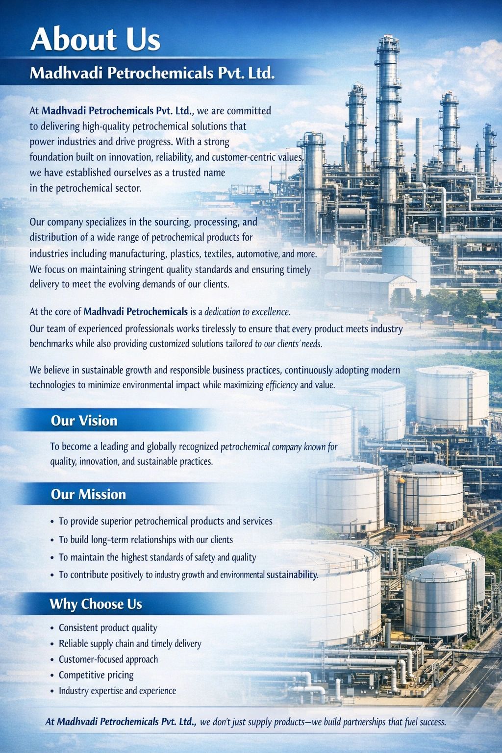 कॉपीराइट © 2026 Madhvadi Petrochemicals (P) Limited - सर्वाधिकार सुरक्षित.